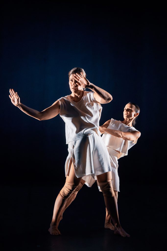 Esitys huipentui kolmeen samanaikaisesti tanssittuun duettoon. Kuvassa etualalla on Saara Töyrylä ja takana Jonna Aaltonen. Kuva © Cata Portin.